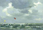 2013Two kitesurfers at wind force 8 near Katwijk at See
